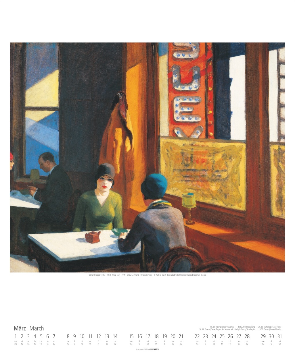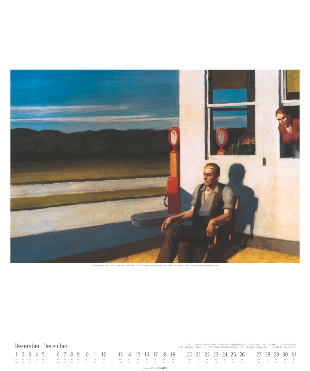 • Die Zerbrechlichkeit des amerikanischen Traums in seiner ganzen Schönheit: Ein Edward Hopper-Kalender im Format 46 x 55 cm