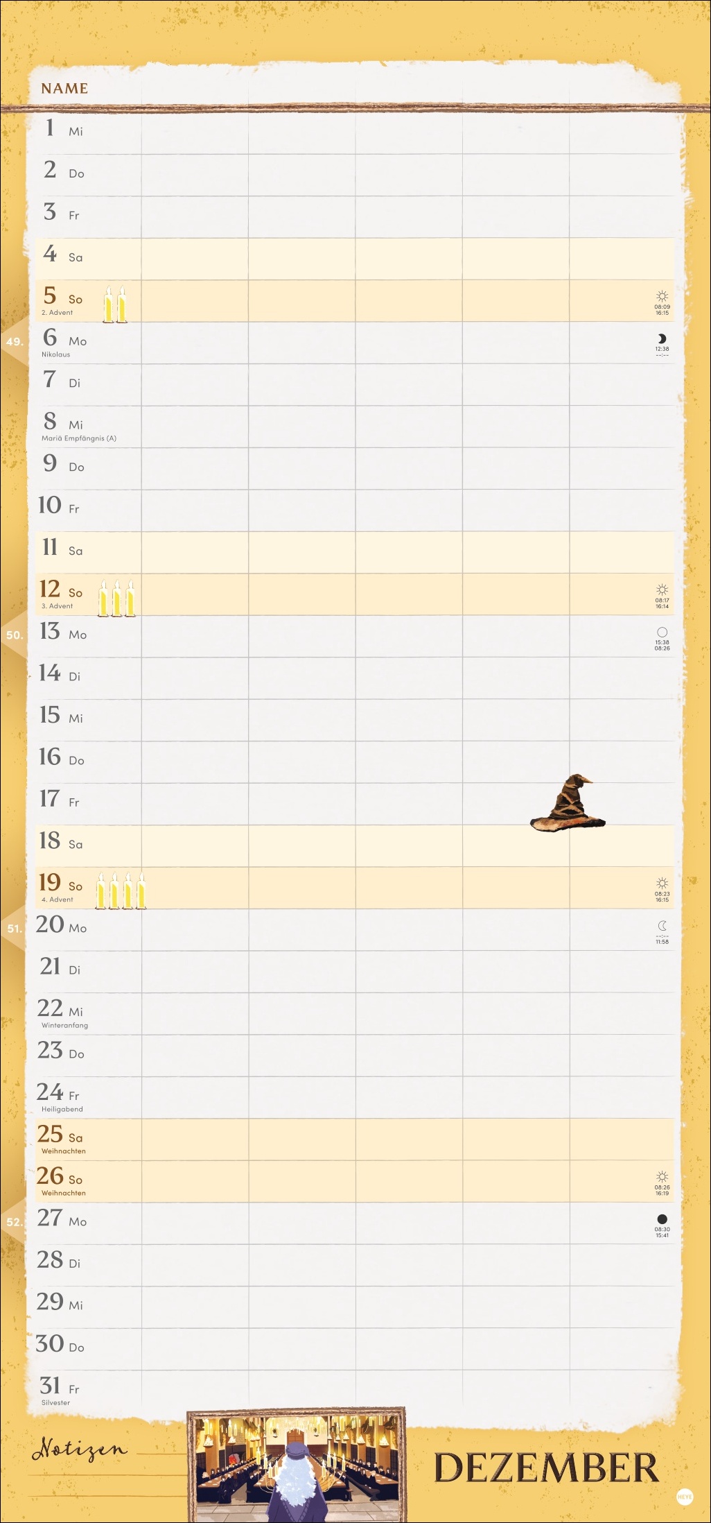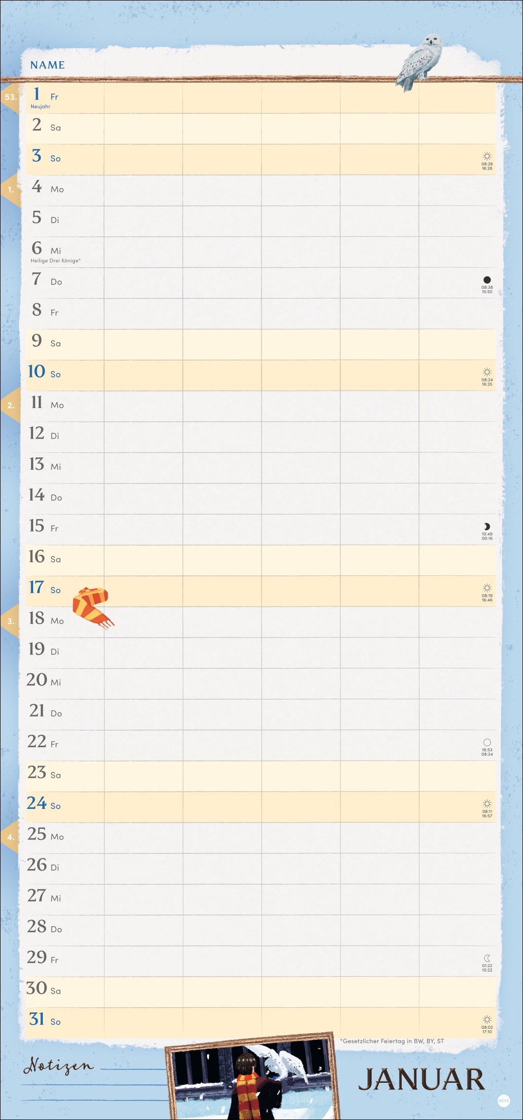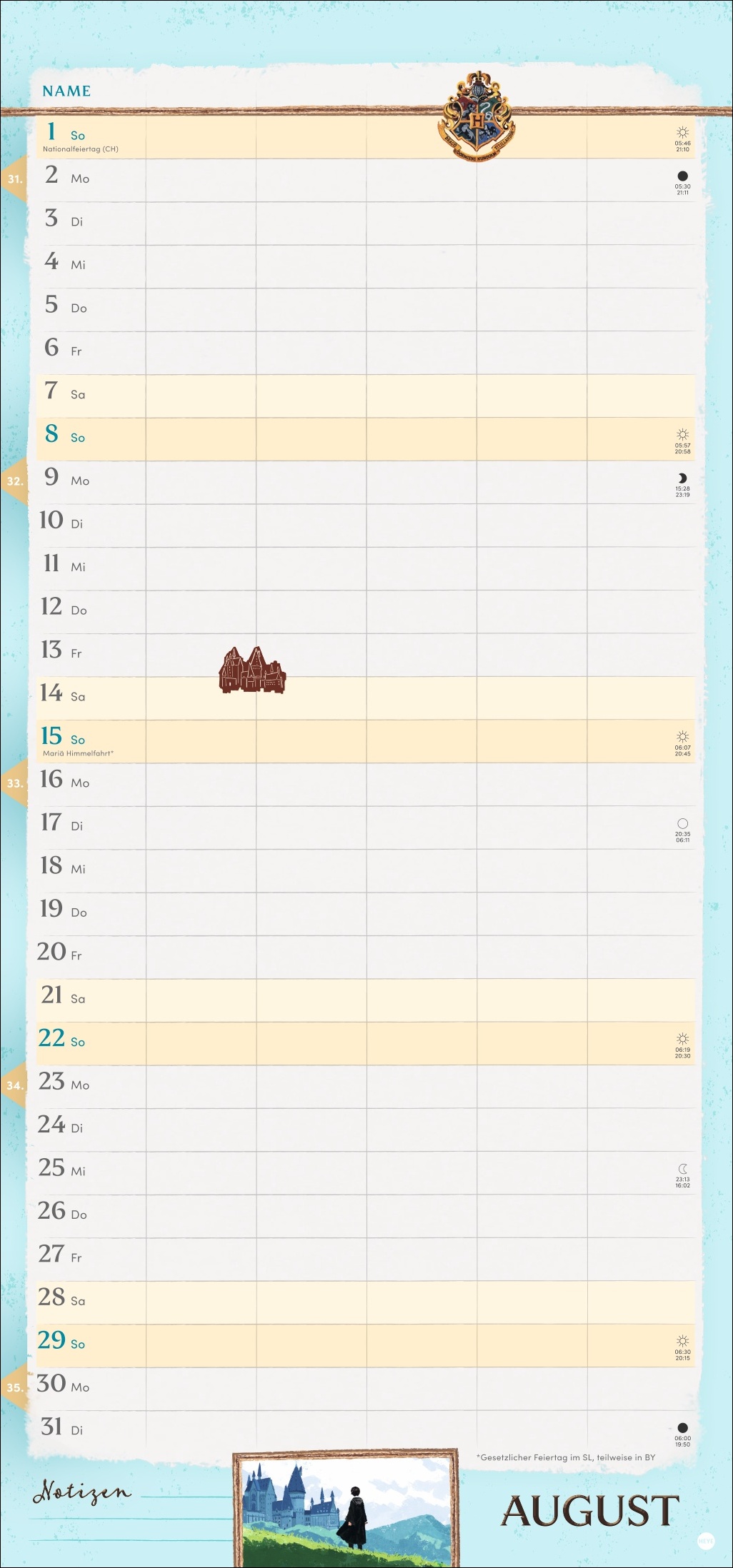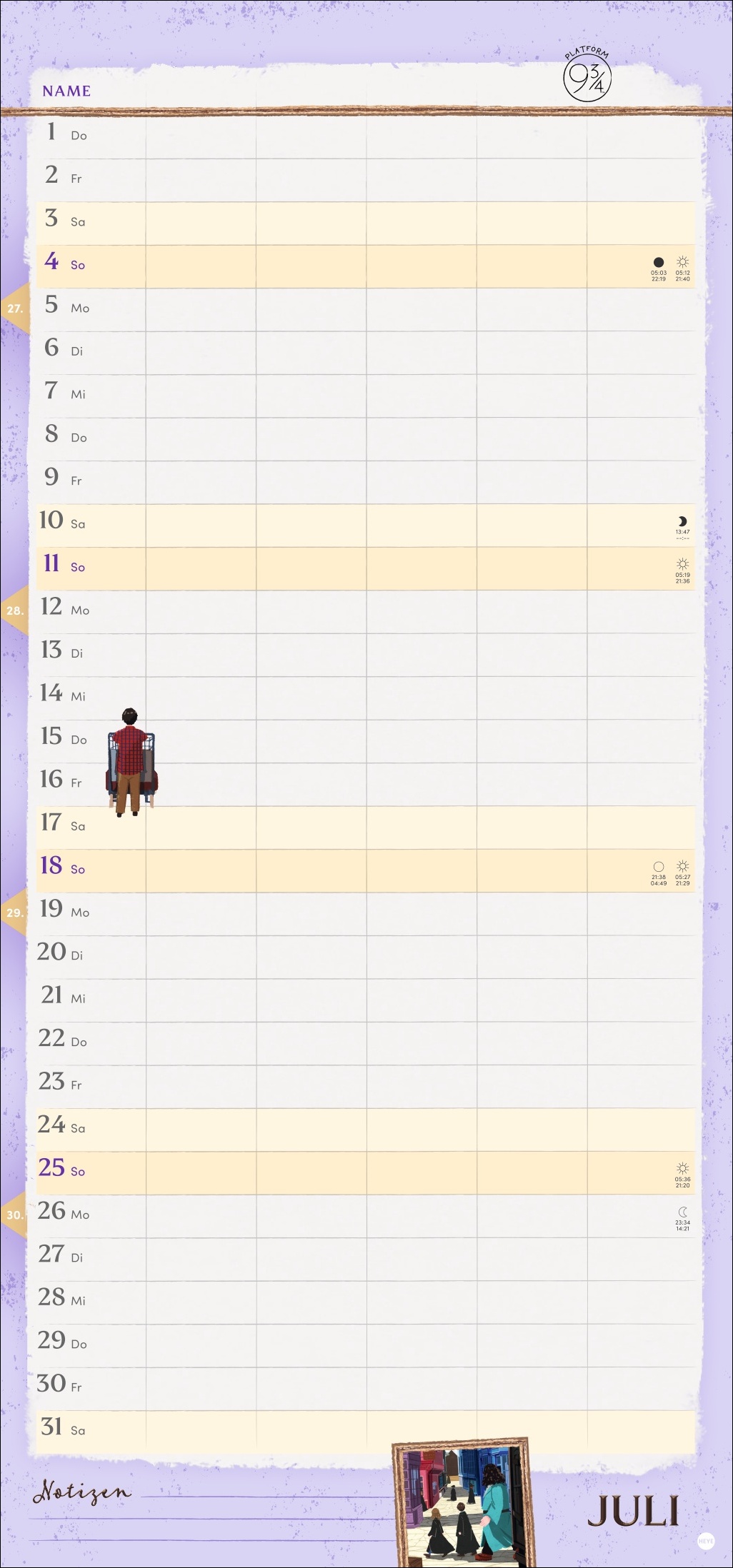 • Alle Familientermine auf einen Blick: der Monatskalender 2027 mit coolen Harry-Potter-Illustrationen