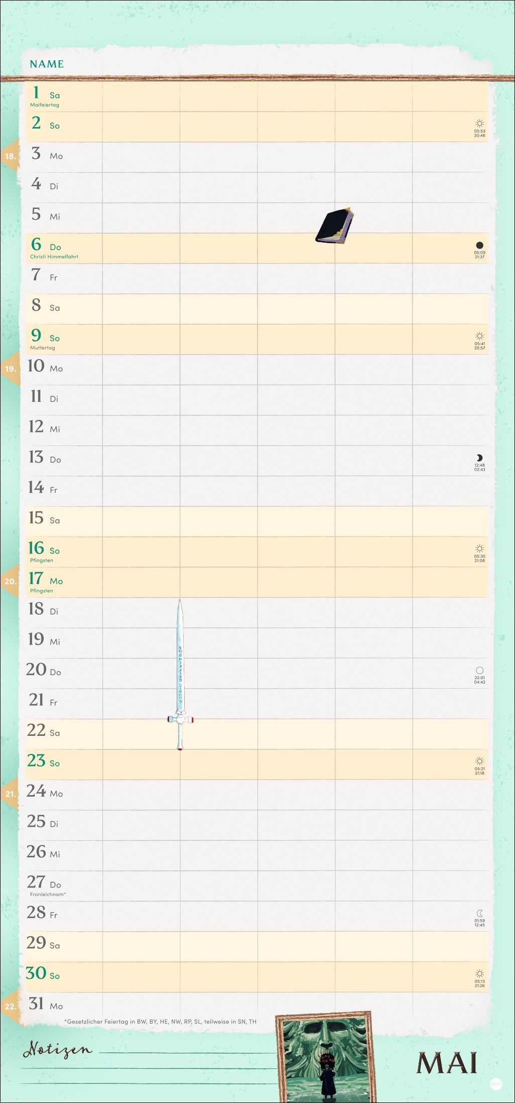 • Familienplaner mit 5 Spalten und viel Platz für Eintragungen im Format 21 x 45 cm