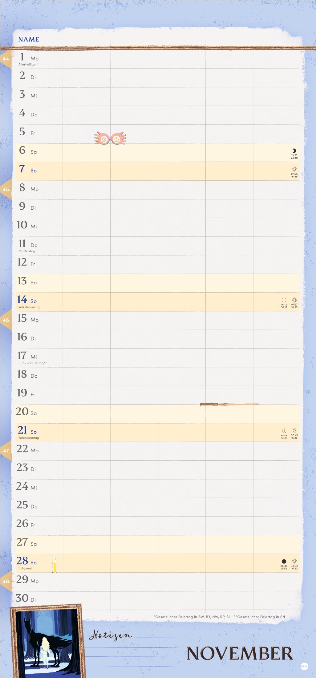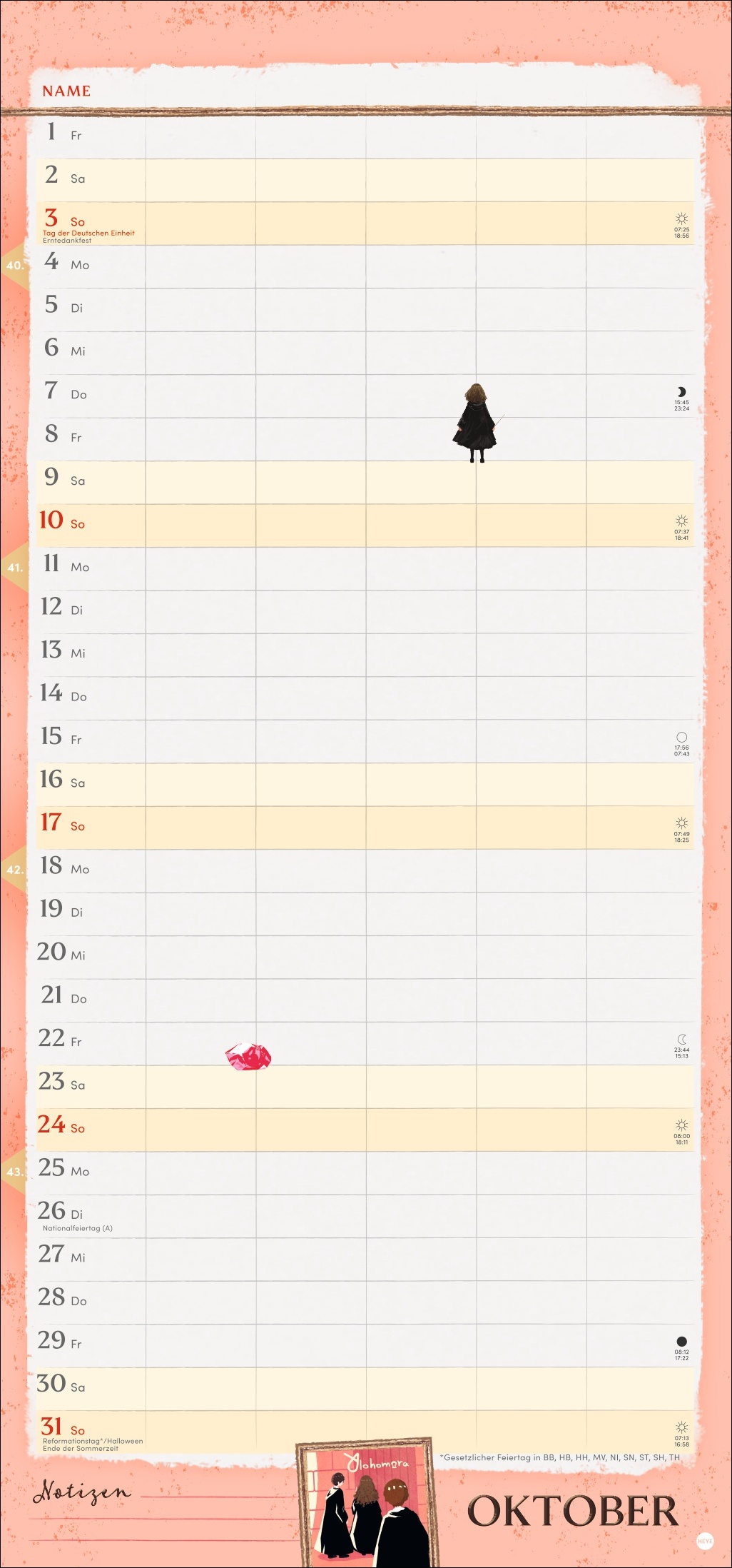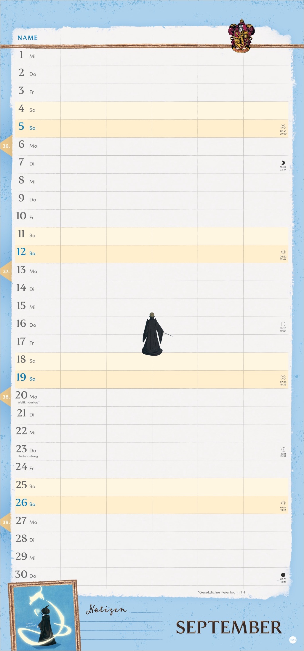 • Solange der Brief aus Hogwarts noch nicht da ist: enthält Muggel-Stundenpläne, Schulferien und Vorschau bis März 2028
