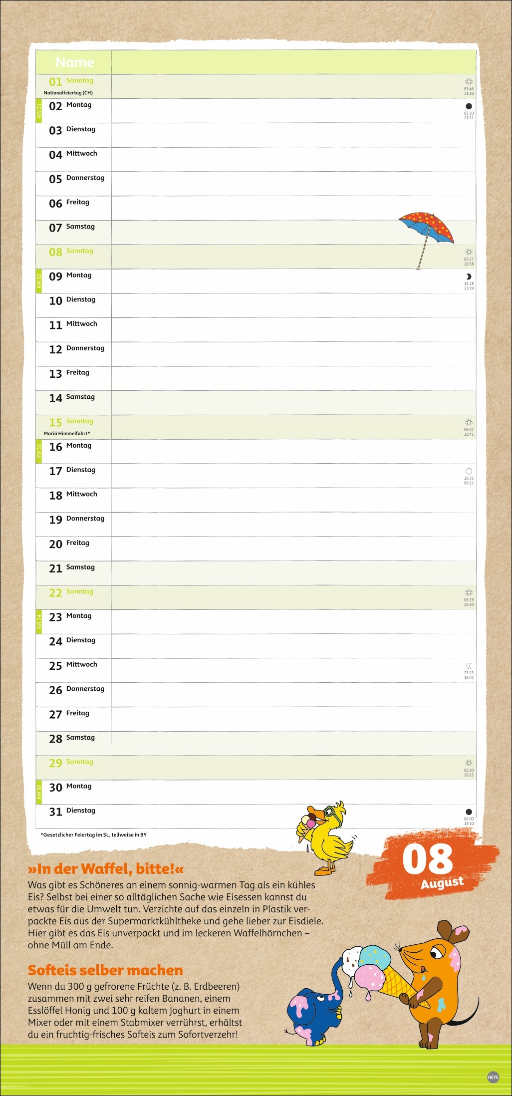 - Die Maus jetzt auch im Familienplaner: Umweltbildung und Organisationshilfe in einem