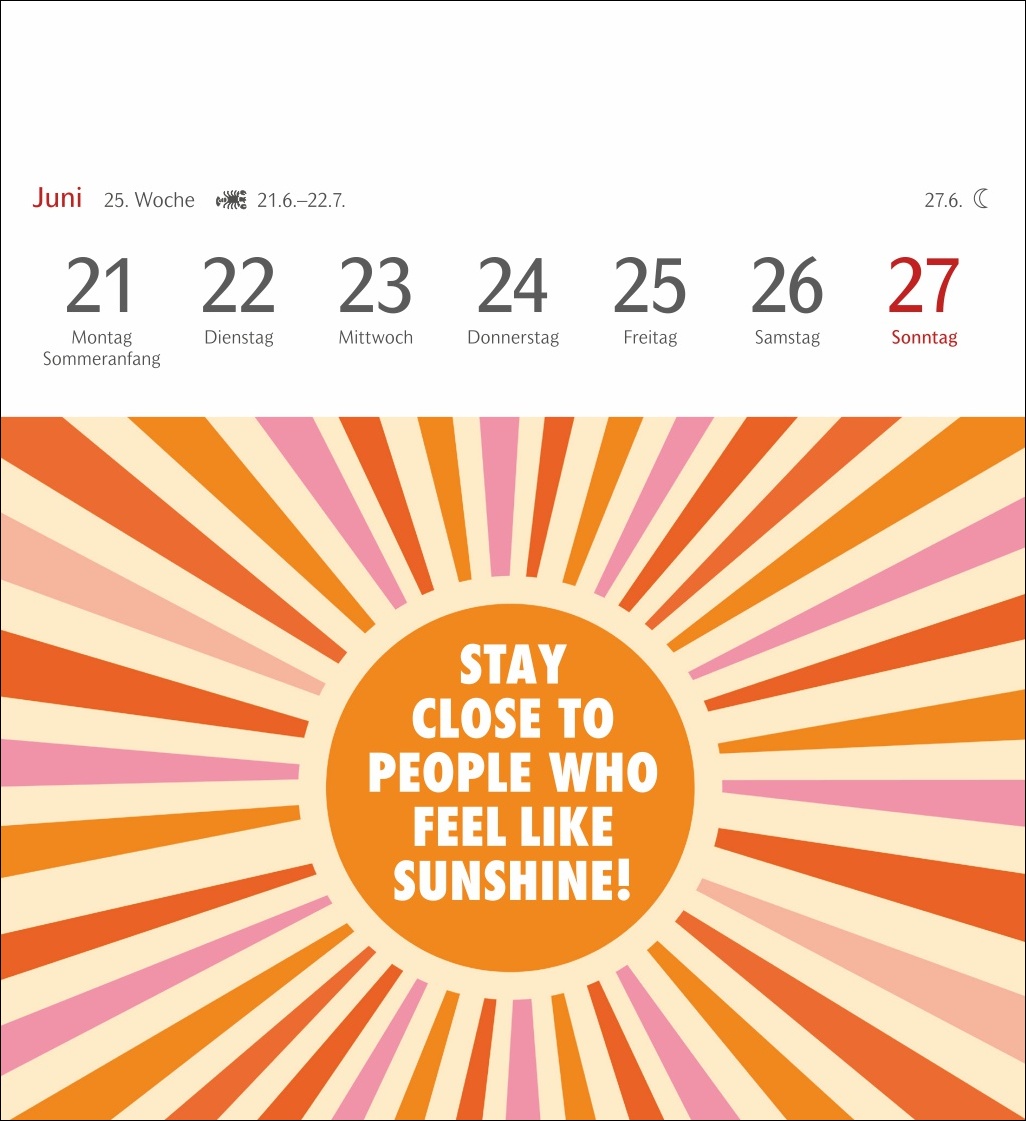 • „Wer den Tag mit einem Lachen beginnt, hat ihn bereits gewonnen“: Kalender zum Aufstellen oder Aufhängen mit positiven Gedanken und optimistischen Sprüchen