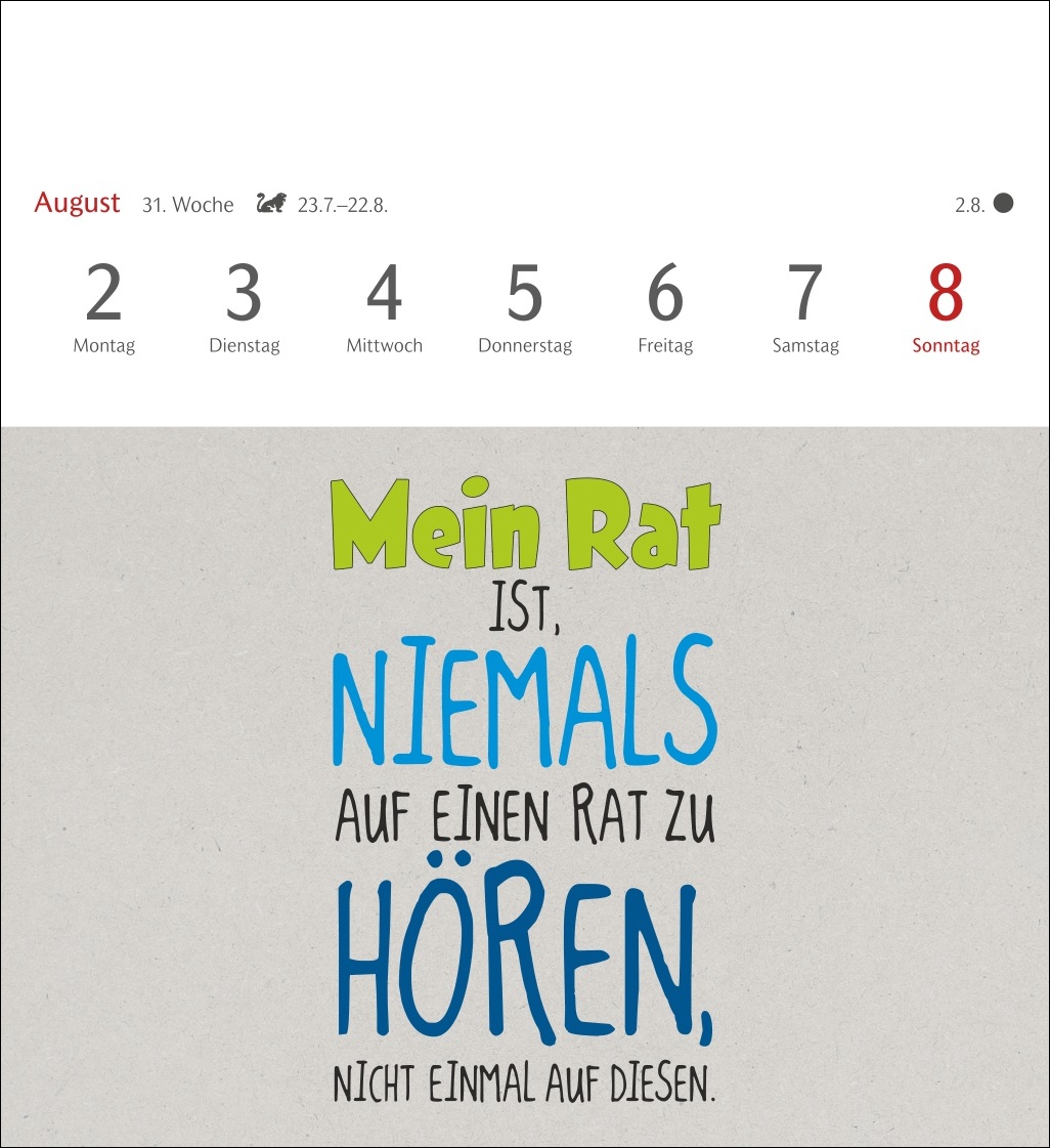 • Typo-Sprüche mit Humor und Haltung: moderner Wochenkalender mit pointierten Lebensmottos für alle, die freche Sprüche lieben