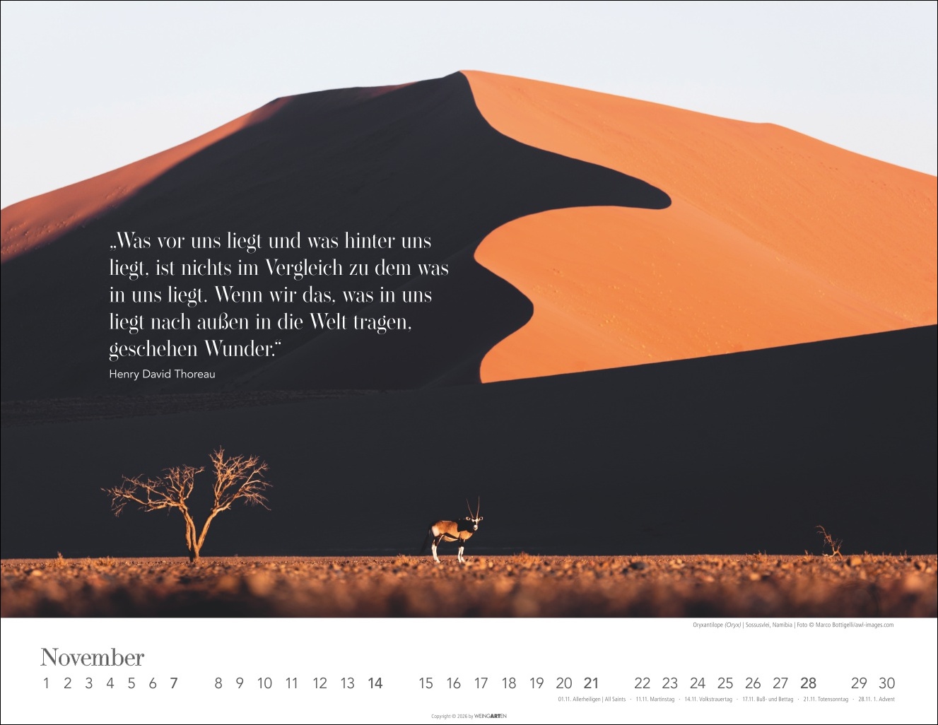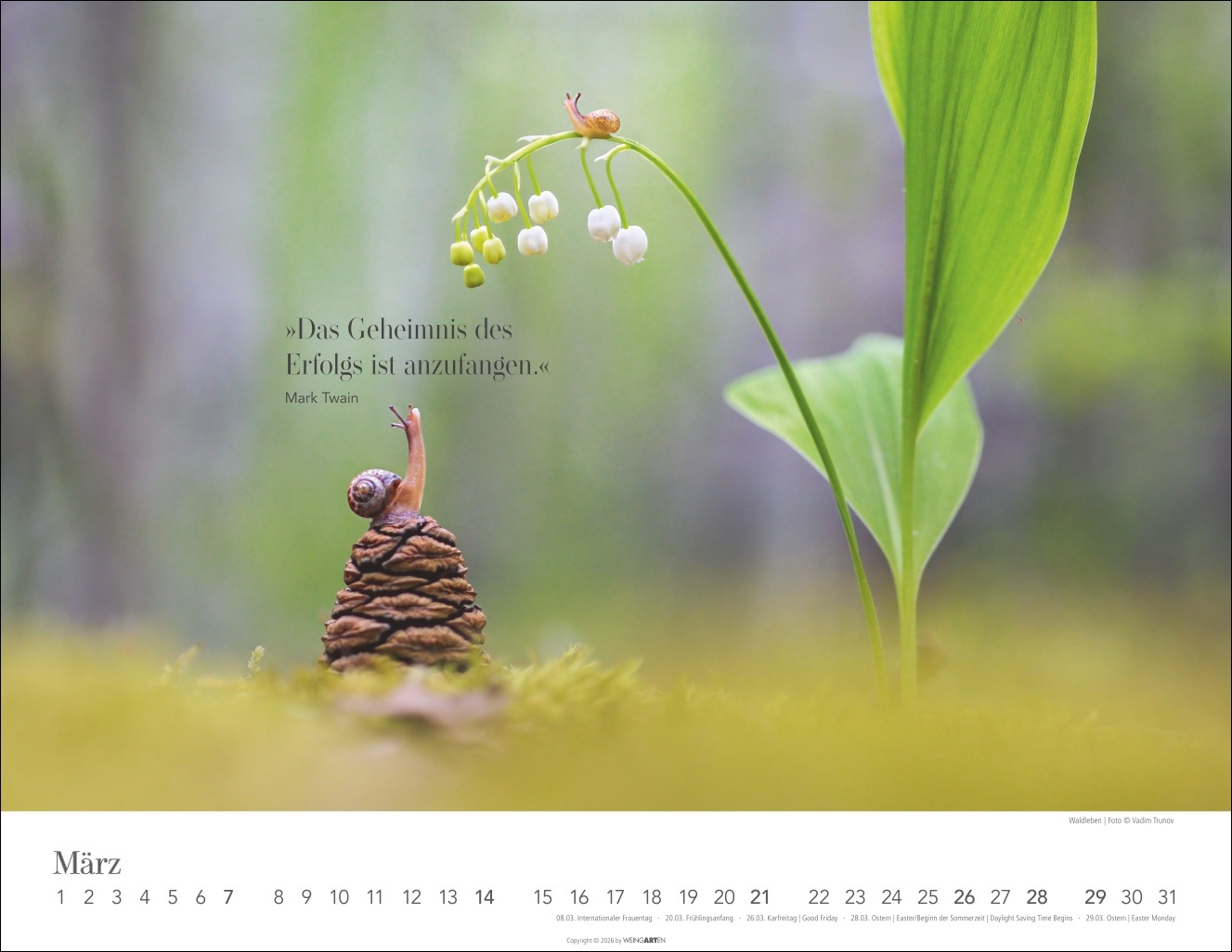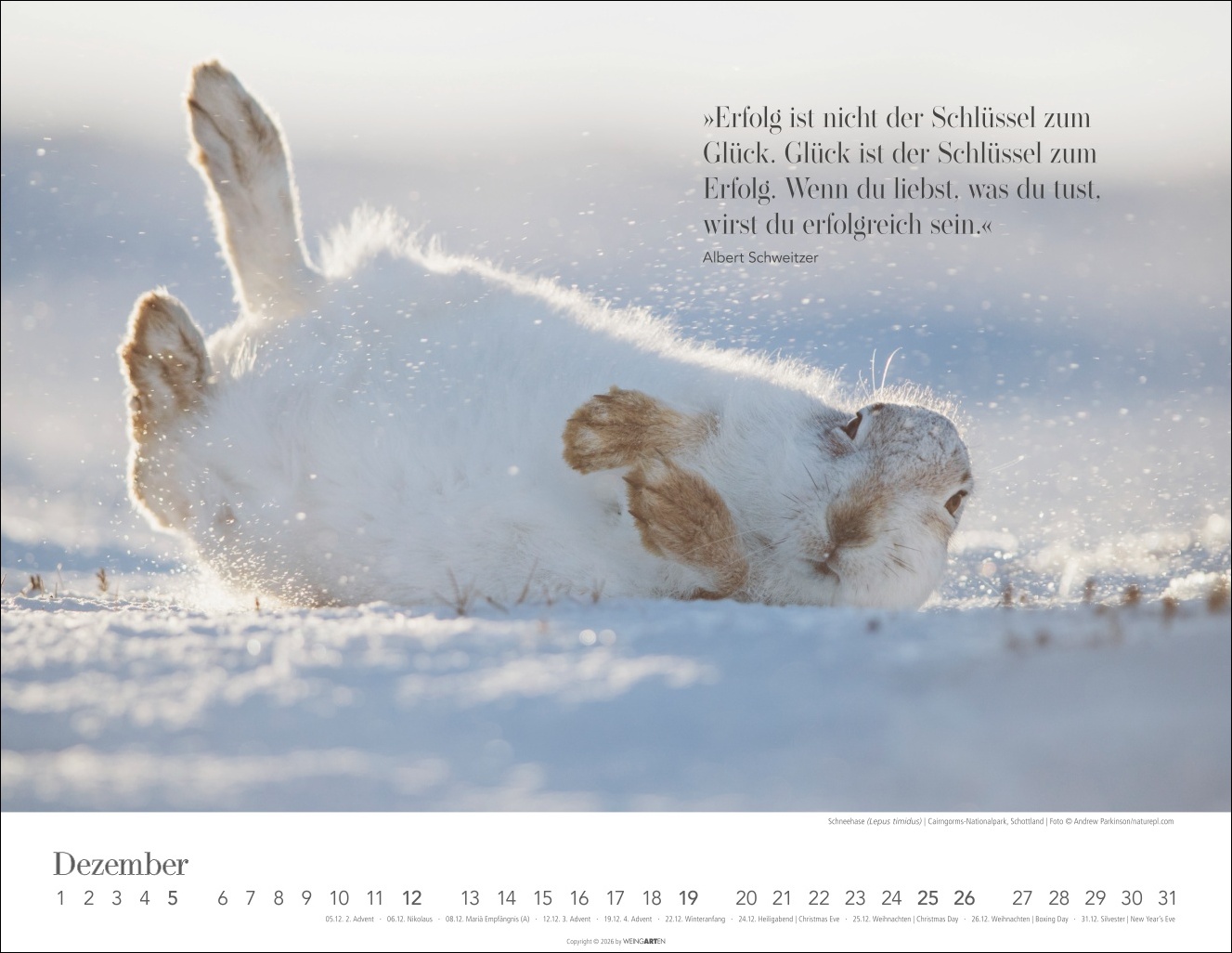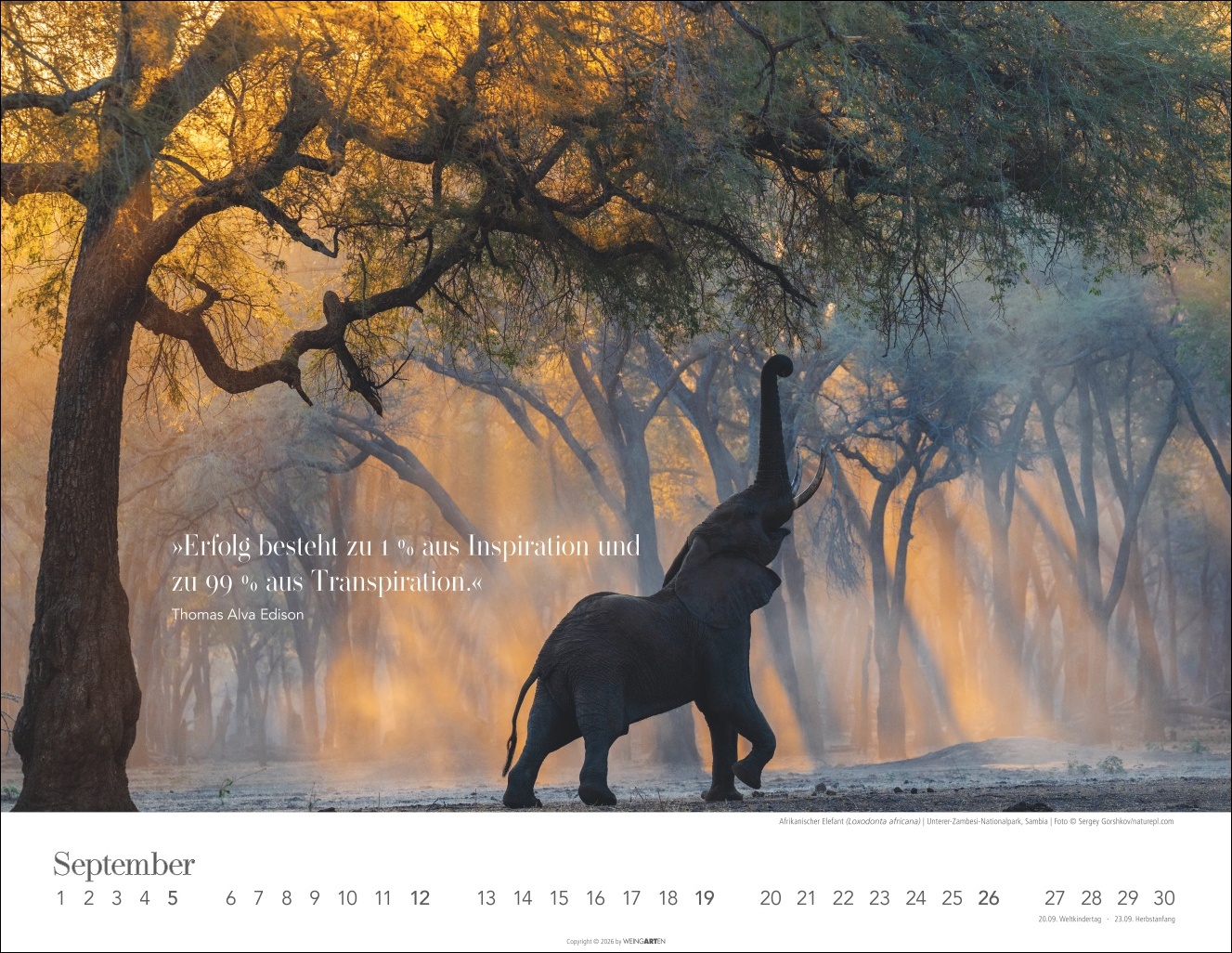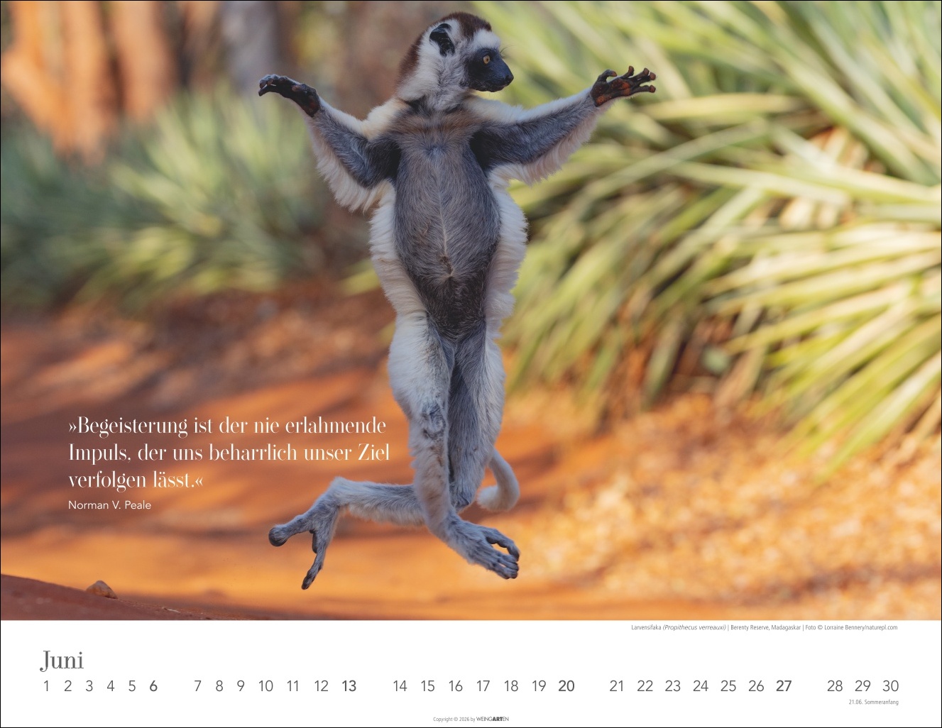 Der Erfolgskalender mit Witz und inspirierenden Zitate berühmter Persönlichkeiten. Humorvoll bebildert mit sympathischen Szenen aus dem Tierreich.
