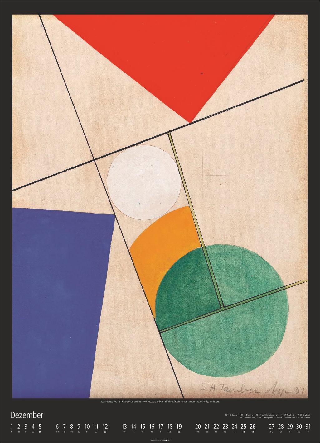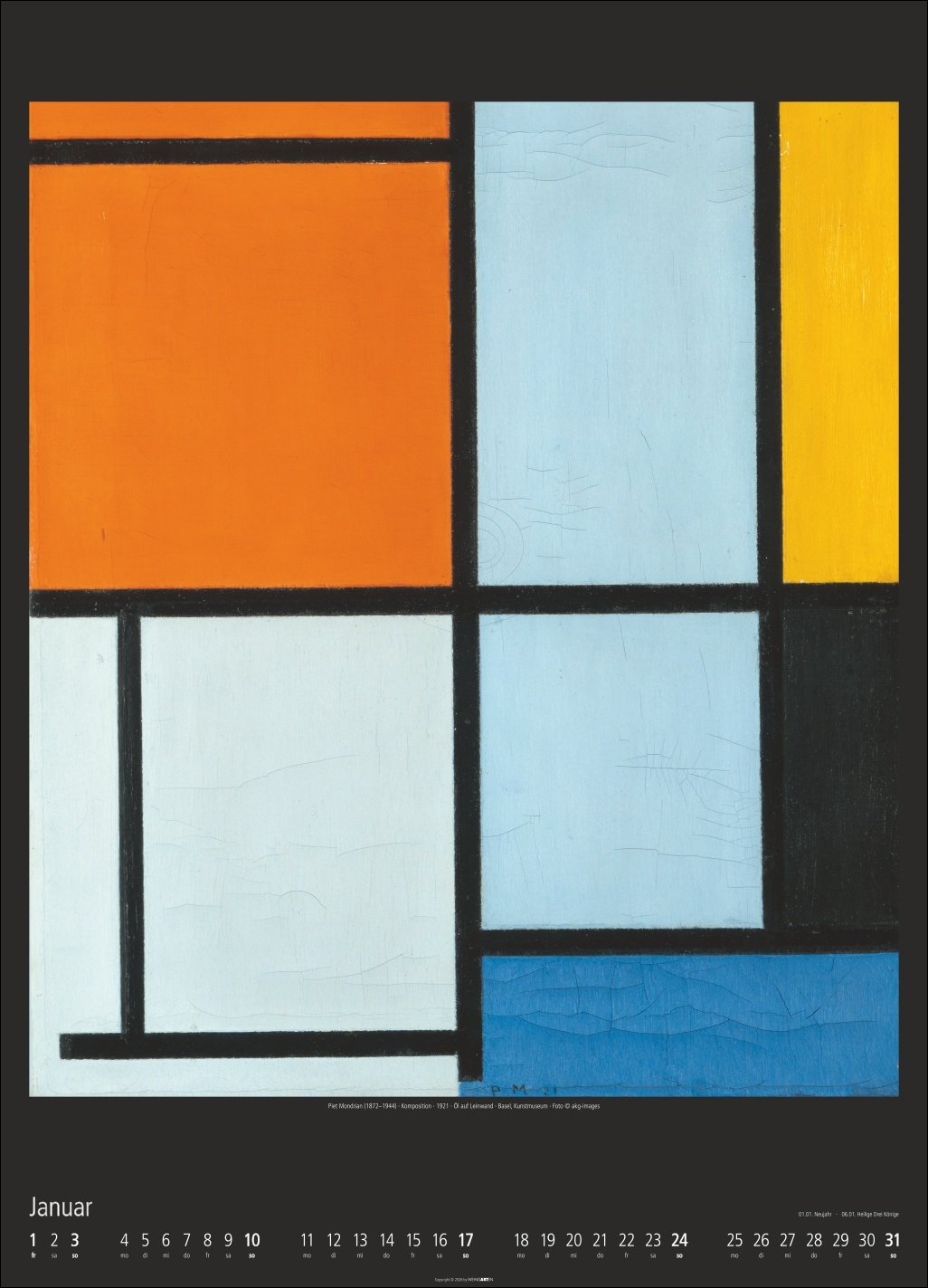 • Auf Augenhöhe mit den großen Meistern des 20. Jahrhunderts: Kunstkalender im XXL-Format 49 x 68 cm mit Gemälden von Mondrian, Klee, Oskar Schlemmer und anderen